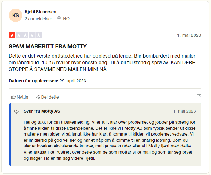 Men det er ikke alle som er fornøyd med tjenestene som Motty leverer. Her skal vi se litt nærmere på noen dårlige anmeldelser: