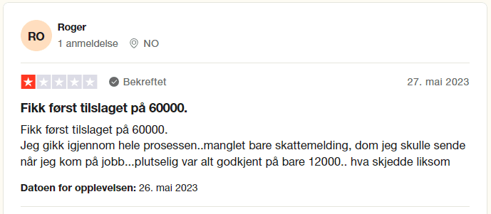 Meget brukervennlig nettside og app. Enkel søknadsprosess med rask respons. Noen kunder opplever avvik mellom søkt beløp og faktisk tilbud, og kravene til lån kan være strenge for yngre låntakere.