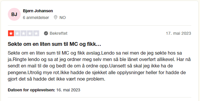 Les Trustpilot kundeerfaringer om Lendo