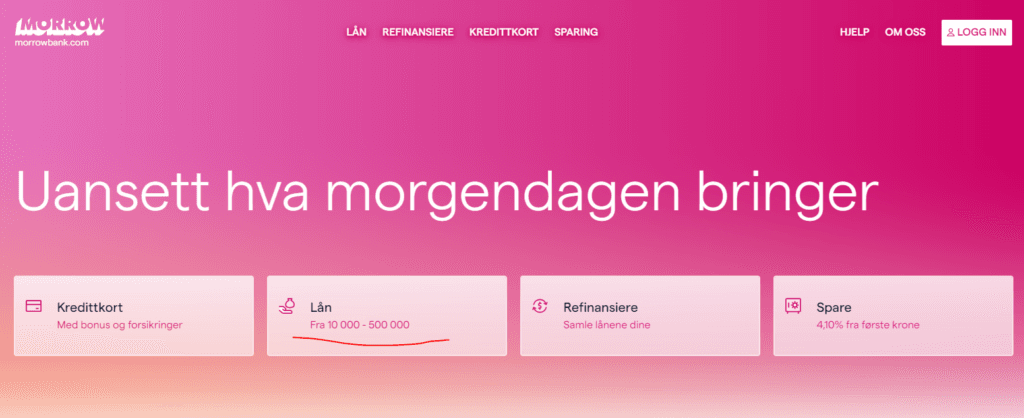 Vi har testet prosedyren for å søke lån på Morrow Bank sine nettsider. Prosessen er egentlig veldig enkelt i forhold til mange andre banker Her skal vi ta deg gjennom trinn for trinn hvordan du gjør dette.