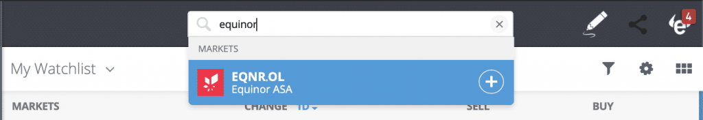 Det er mange utbytteaksjer å velge mellom. Hos eToro, eller den handelsplattformen du bruker, kan du søke direkte på de aksjene du vil finne.