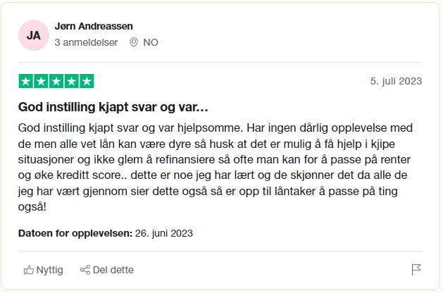 **Derfor er det lurt å sjekke omtaler på bankene du ønsker å akseptere et tilbud fra i tillegg, ikke bare låneformidleren. **