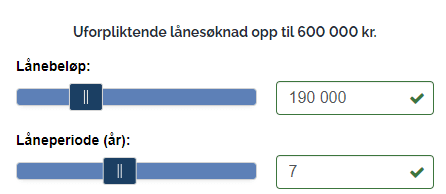 Når du beveger på disse gliderne så får du et stipulert beløp du må betale per måned for dette forbrukslånet: