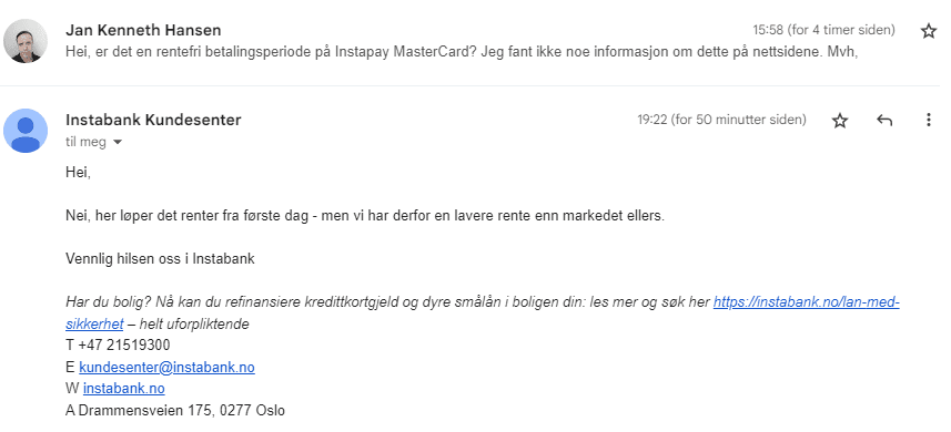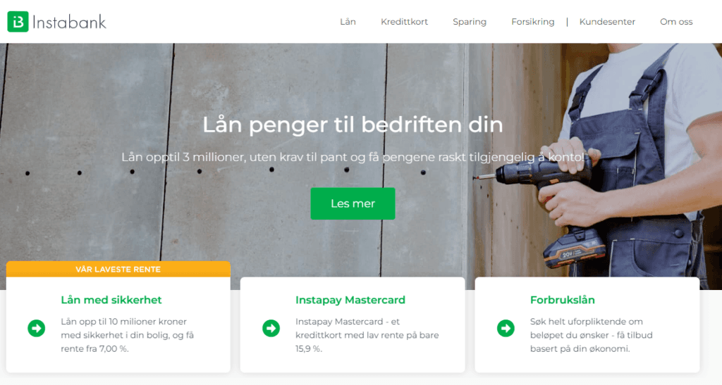 Instabank tilbyr forbrukslån med relativt konkurransedyktige renter fra 7,99%, men boliglånsrentene fra 6,75% ligger betydelig over markedsgjennomsnittet på rundt 4,7%. Kredittkort med 15,9% rente er konkurransedyktig, men mangler rentefri periode.