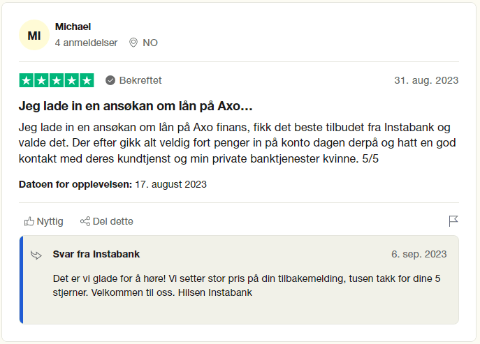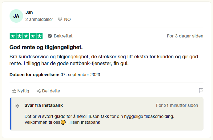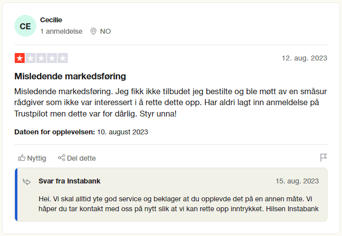 Instabank har tydelige og lett forståelige betingelser med godt strukturert informasjon på nettsidene. Banken tilbyr god fleksibilitet med mulighet for refinansiering av gjeld, inkludert betalingsanmerkninger med sikkerhet i bolig.