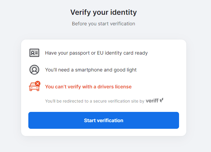 I og med at dette er en investeringsplattform er dette trinnet ganske omfattende. Du må blant annet oppgi adresse, bostedsland og laste opp et ID-dokument som pass.