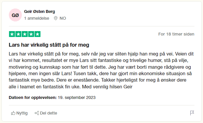 Her har vi det rett fra kundens munn - så spør etter "Lars" hvis du skal søke om lån. Det er rett og slett ingen bedre!