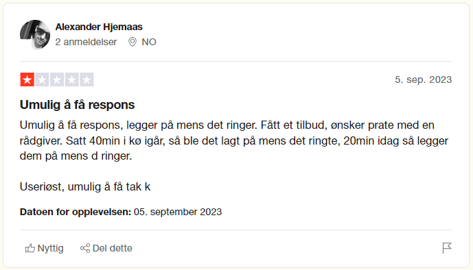 Av de få klagene som kommer inn på Trustpilot, er det en gjenganger med at det er vanskelig å komme gjennom på telefon til kundeservice.