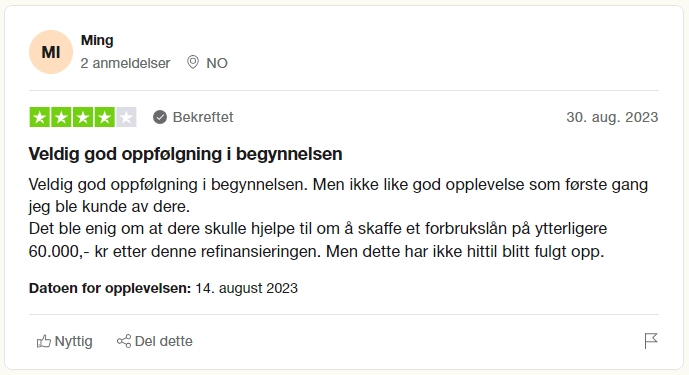 Av over 6.500 kundeanmeldelser på trustpilot, er det kun 1 % som gir 1 stjerne til selskapet. Men hva er det disse omtalene sier om selskapet, og hva kan du lære av dette? Det viser det hva du kan forvente som kunde av selskapet, og hvilke negative sider det er å benytte seg av denne låneagenten.