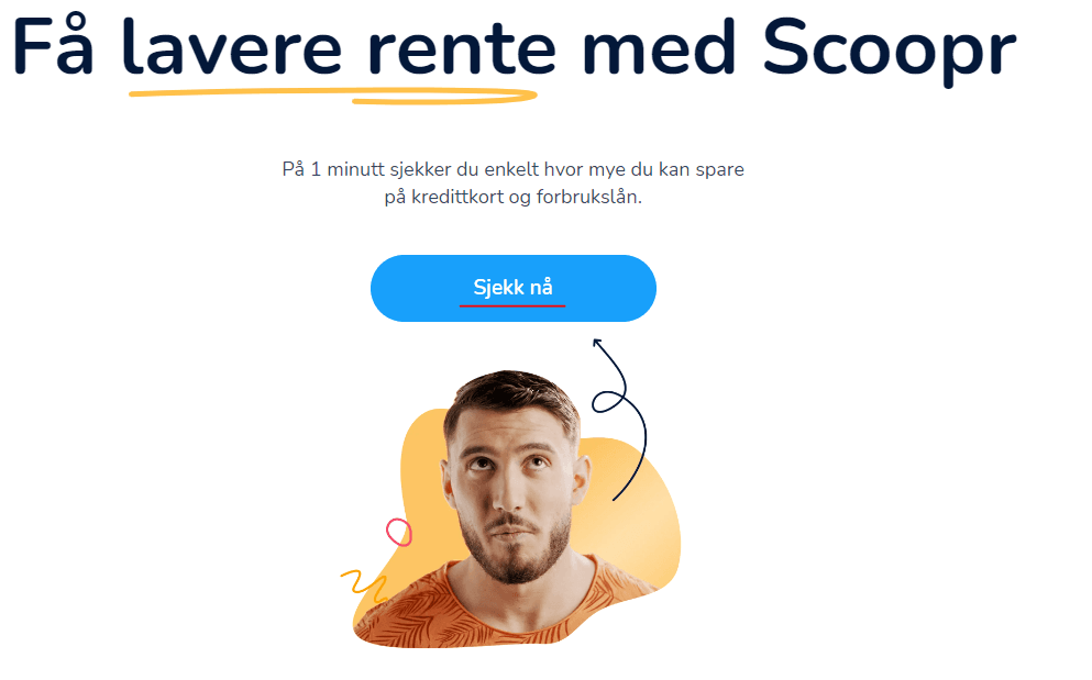 Hos Scoopr hjelper de deg med å spare på forbrukslån. På et minutt kan du sjekke hvor mye du kan spare på forbrukslånet.